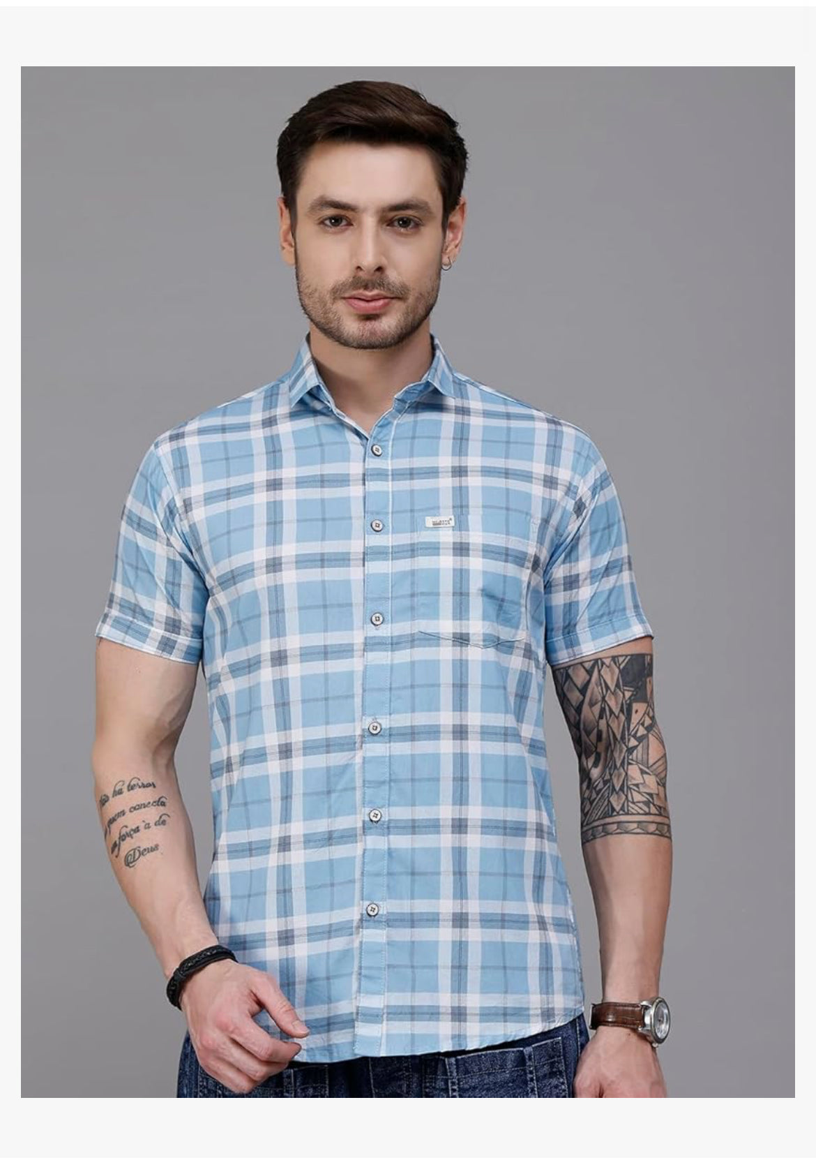 Man Men Slim Fit Pure Cotton Checkred Half Sleeve Casual Shirt