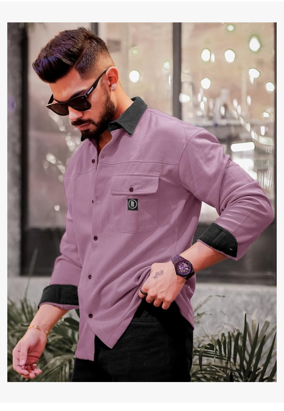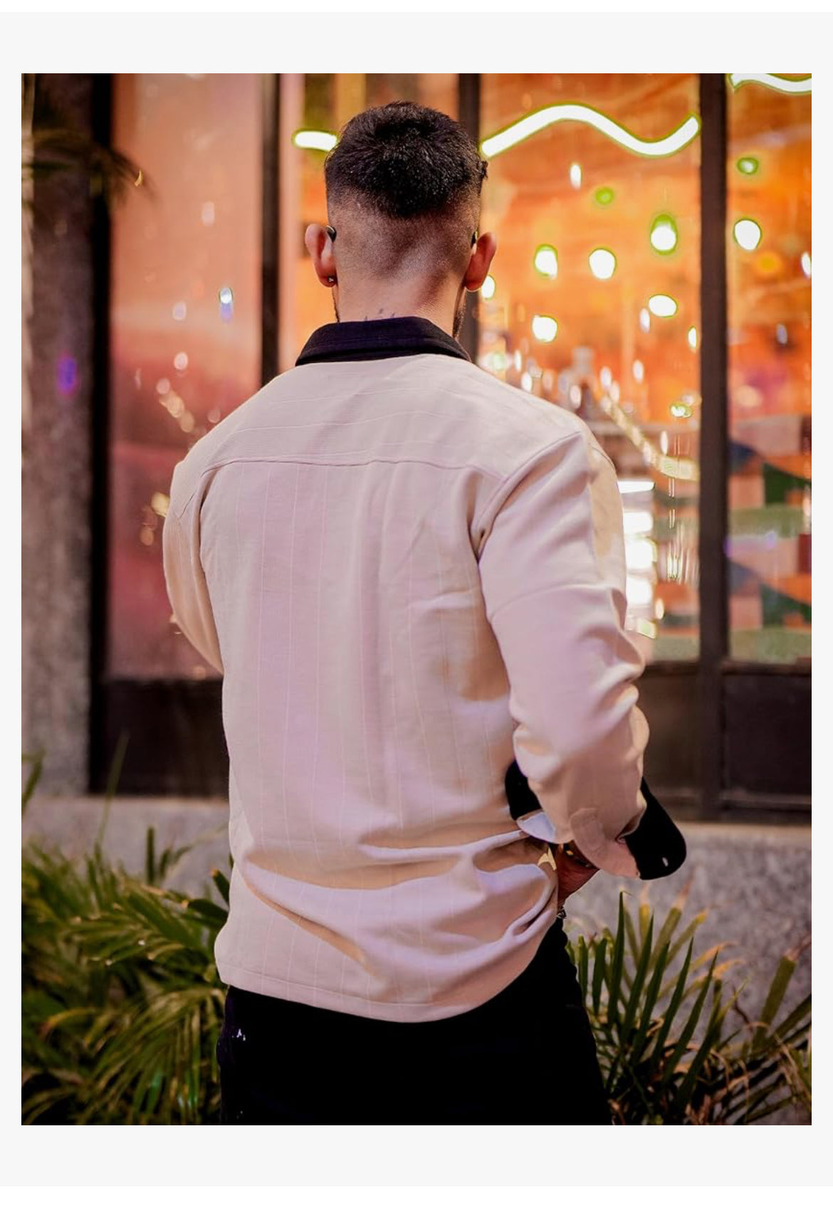 Mens Solid Collared Neck Full Sleeve Biscuit and Black Cotton Shirt